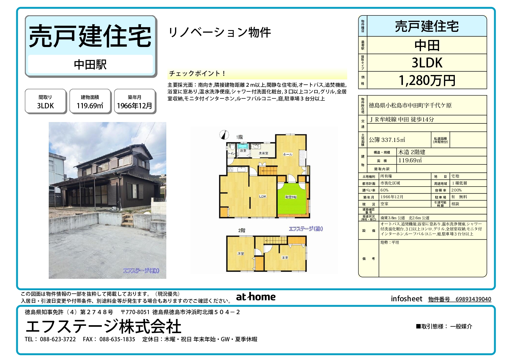 JR牟岐線 中田 徒歩20分/ バス停 日開野 停歩1分